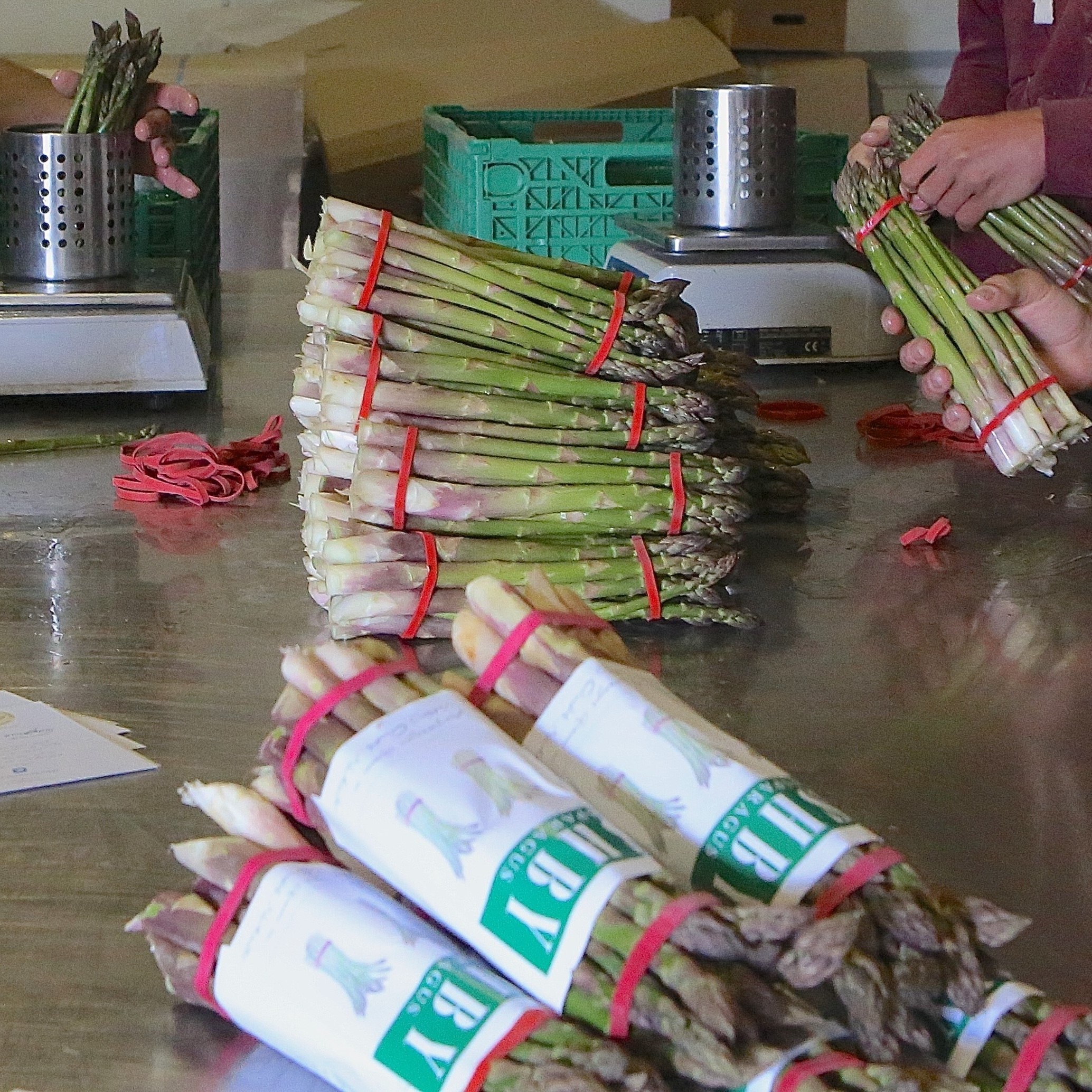 Once the season has commenced it’s all hands on deck, everything is cut by hand. Asparagus grows so fast, you can almost watch in growing. Occasionally, the crop has to be cut twice in one day! Once cut, we wash it, bundle it, weigh and pack it with aim of producing and selling the freshest high quality asparagus we can.